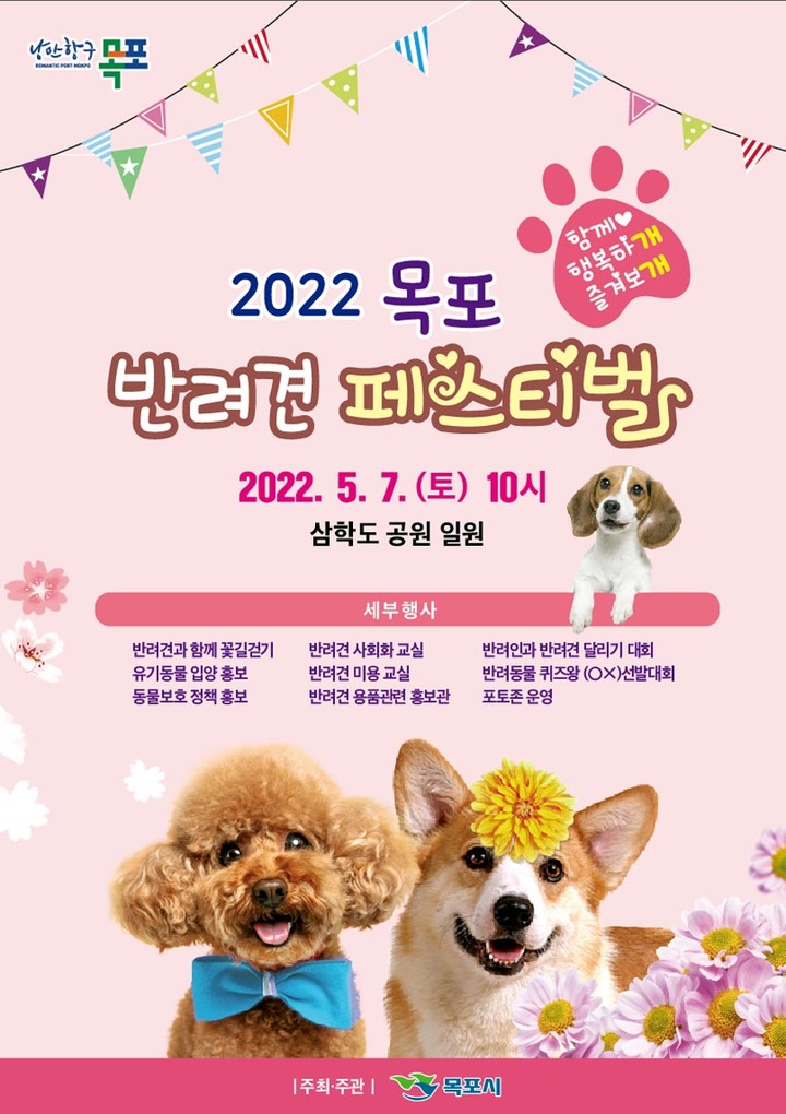 전남 목포시는 오는 5월 7일 삼학도공원 일원에서 '함께♥ 행복하개 즐겨보개'란 주제로 '2022 목포 반려견 페스티벌'을 연다고 18일 밝혔다.