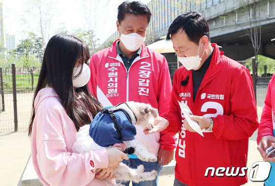 김 후보는 이날 일일 캠프를 찾아온 주민들에게 반려견놀이터의 운영시간 연장·반려동물 등록비용 지원사업 확대, 반려동물 놀이터·쉼터 등 추가 조성 등을 약속했다.