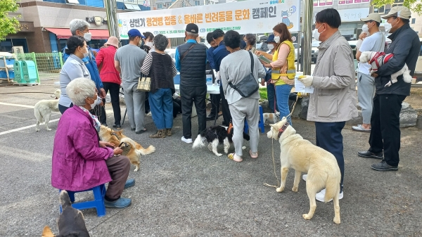 경남 창원시 진해구 웅동1동은 25일 행정복지센터에서 광견병 예방접종 캠페인과 함께 견주(犬主)를 대상으로 올바른 반려동물문화 확산을 위한 캠페인을 실시했다고 밝혔다.