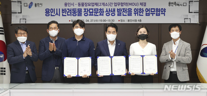 경기 용인시가 27일 지역 내 동물장묘업체 2곳과 ‘반려동물 장묘문화 상생 발전 업무 협약’을 체결했다.