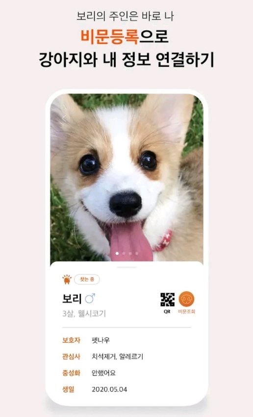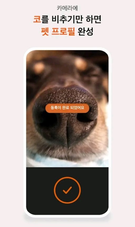 “개의 코를 자세히 본 적이 있으세요? 코에는 사람의 지문같은 무늬, 비문이 있는데, 비문 모양은 개마다 다르고 한 번 만들어지면 바뀌지 않는다고 합니다. 사람이 지문으로 신원을 확인하듯, 개는 비문으로 신원을 확인 가능해요. 펫나우는 고유의 광학 기술로 개의 비문을 찍고, 이를 토대로 개의 정보를 입력하고 신원을 확인하는 서비스를 선보였습니다.