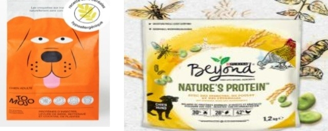 ‘토모조’ 곤충 단백질 사료(좌), 네슬레퓨리나 곤충 단백질 사료(우)