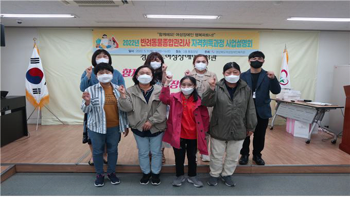 여승동 경상북도여성장애인복지관장은 “여성장애인을 위한 반려동물 자격 취득사업이 반려동물과 관련된 여러 사회 문제를 예방하는데 기여하고 여성장애인의 취·창업 기반을 마련하는 복지 사업이 되길 기대한다”라고 말했다.