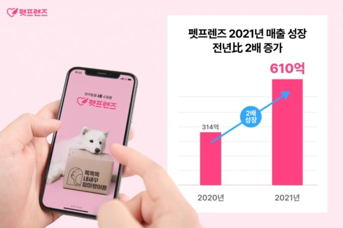 반려동물 쇼핑몰 펫프렌즈(대표 윤현신)가 21년 매출 610억원을 달성하며 전년 314억원 대비 2배 가까이 증가했다고 밝혔다.
