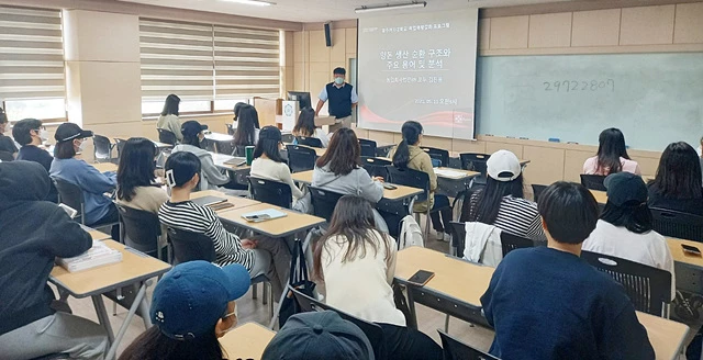 이번 특강은 ‘양돈 생산 순환 구조와 주요 용어 및 분석’을 주제로 ㈜모두 소개, 양돈&우리한돈, 양돈 생산 지표 주요 용어, 생산성에 영향을 미치는 요인과 분석, 반려동물 전공자의 실무와 더불어 산업동물 관련 진로 분야에 대해 강의했다.