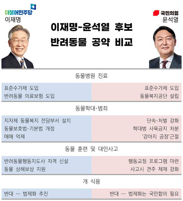 법제화VS실효성…한눈에 보는 이재명-윤석열 반려동물 정책