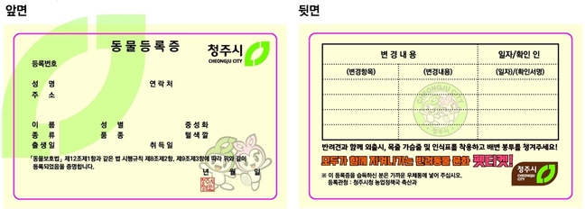 충북 청주시는 기존 종이형 동물등록증의 사용 불편을 개선하기 위해 다음달 1일부터 카드형 동물등록증을 발급한다고 30일 밝혔다.