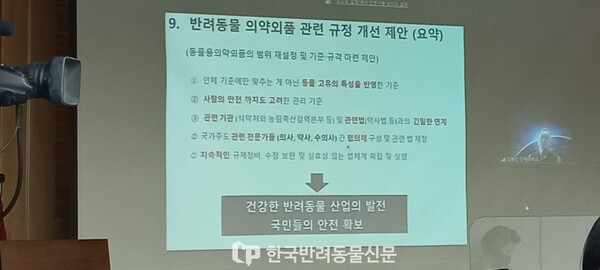 따라서 해당 토론회에서는 동물 의약외품 유해물질 기준에 관한 별도 고시 제정 및 법안 마련과 이를 위한 반려동물 관련 폭넓은 연구 및 조사의 필요성이 쟁점 사항으로 떠올랐다.