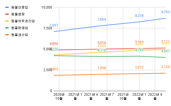 △ 동물병원과 동물위탁관리업, 동물생산업 역시 증가 추세를 보였다.