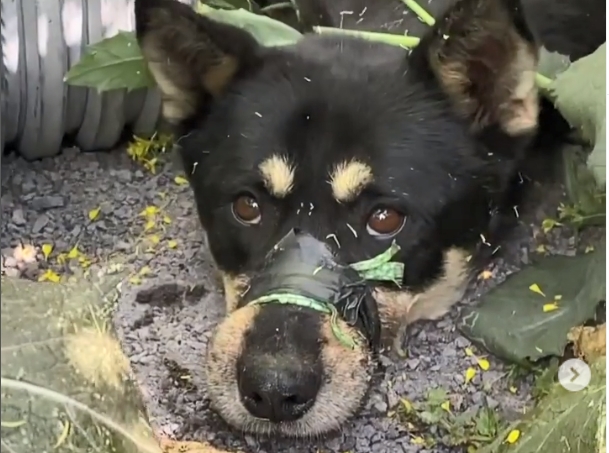 유기견 구조 자원봉사자 A씨가 SNS에 공개한 '주홍이' 구조 당시 모습. 노끈으로 묶었던 입 주변에 상처가 나있다. 인스타그램 캡처