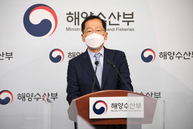 지난해 8월 비봉이 방류 계획을 발표하는 조승환 해양수산부 장관. 해양수산부 제공