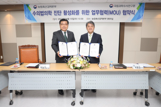 양 기관은 13일 경북 김천시 농림축산검역본부(검역본부)에서 업무 협약을 맺고 법의학 기술 및 자원을 공유하고 공동연구를 위해 상호 협력하기로 했다.