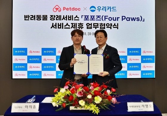 포포즈를 운영하는 펫닥에 따르면 지난달 31일 이의종 포포즈 대표와 서영호 우리카드 마케팅본부장은 협약을 맺고 포포즈 장례 서비스 이용 시 우리카드를 이용하는 보호자들에게 맞춤형 혜택을 제공하기로 했다.