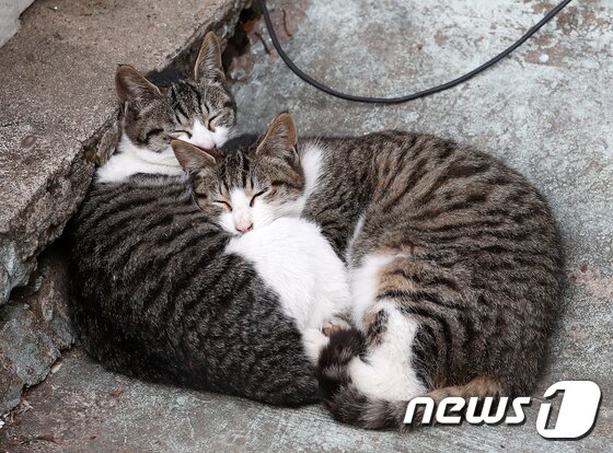 서울 시내 한 공원에서 낮잠을 자고 있는 길고양이들의 모습. /뉴스1 © News1 김진환 기자