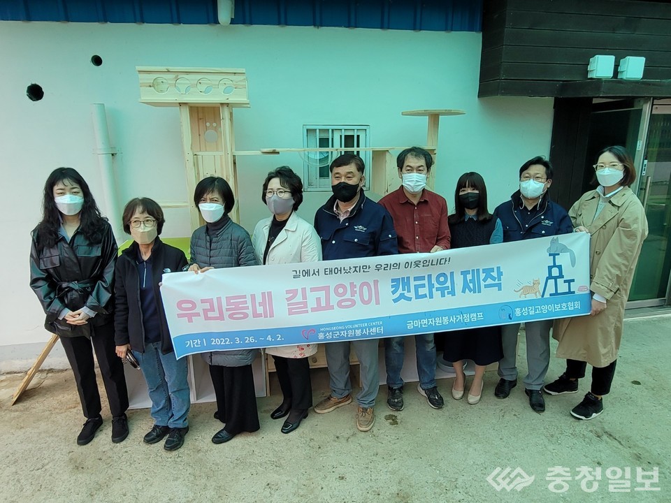 한편, '홍성군자원봉사센터'는 길고양이에 대한 부정적 인식을 개선하고 고양이 학대 사회문제를 해결하기 위해 캣타워를 제작하여 설치 지원하는 운동을 추진하고 있다.
